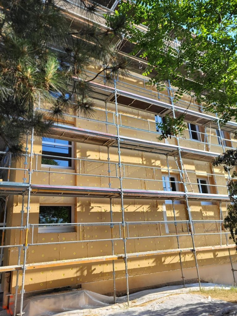 Chantier Bischheim travaux réalisés en 2023 1200 m²Enduisage IP 18E crépi plastique